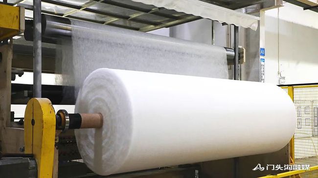 在位于中關(guān)村門頭溝園的總部廠房內(nèi),一條熱風(fēng)無紡布生產(chǎn)線正在高效運轉(zhuǎn),原材料經(jīng)過全自動設(shè)備的加工處理,最終制作成一卷卷白色的無紡布成品。