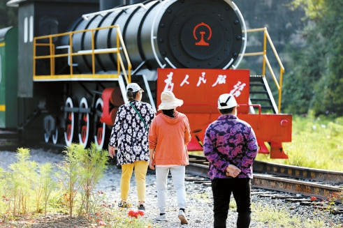 導(dǎo)覽過程中,他特意在山間的八路軍雕像處多停留了一會(huì)兒,為游客講述著這里的紅色文化。在邢衛(wèi)兵的帶領(lǐng)下,游客們走過虛擬的“戰(zhàn)場(chǎng)”“防空洞”,來到了紅色文化紀(jì)念館。看著展板、實(shí)物和雕塑,不少游客的神情變得肅穆起來。一旁的邢衛(wèi)兵看在眼里,喜在心頭,挖掘紅色文化這步棋,炭廠村又走對(duì)了。